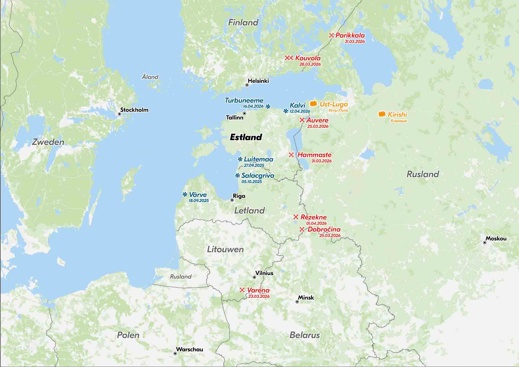 Hoewel de meeste drones in Rusland terechtkwamen, stortten er toch een aantal neer in Estland, Letland en Litouwen. Ook in Finland kwamen tijdens de Oekraïense actie twee drones neer. De restanten van de drones die nu zijn gevonden, waren in zee gestort. Volgens de Estse veiligheidsdiensten hebben de drones die nu aanspoelen, nooit door het Estse luchtruim gevlogen. Die verklaring lijkt aannemelijk, want er kwamen ook drones terecht in de Finse Golf. Ditmaal zijn er op 11 locaties aan de kust, rondom de plaats Turbuneeme, brokstukken gevonden.
